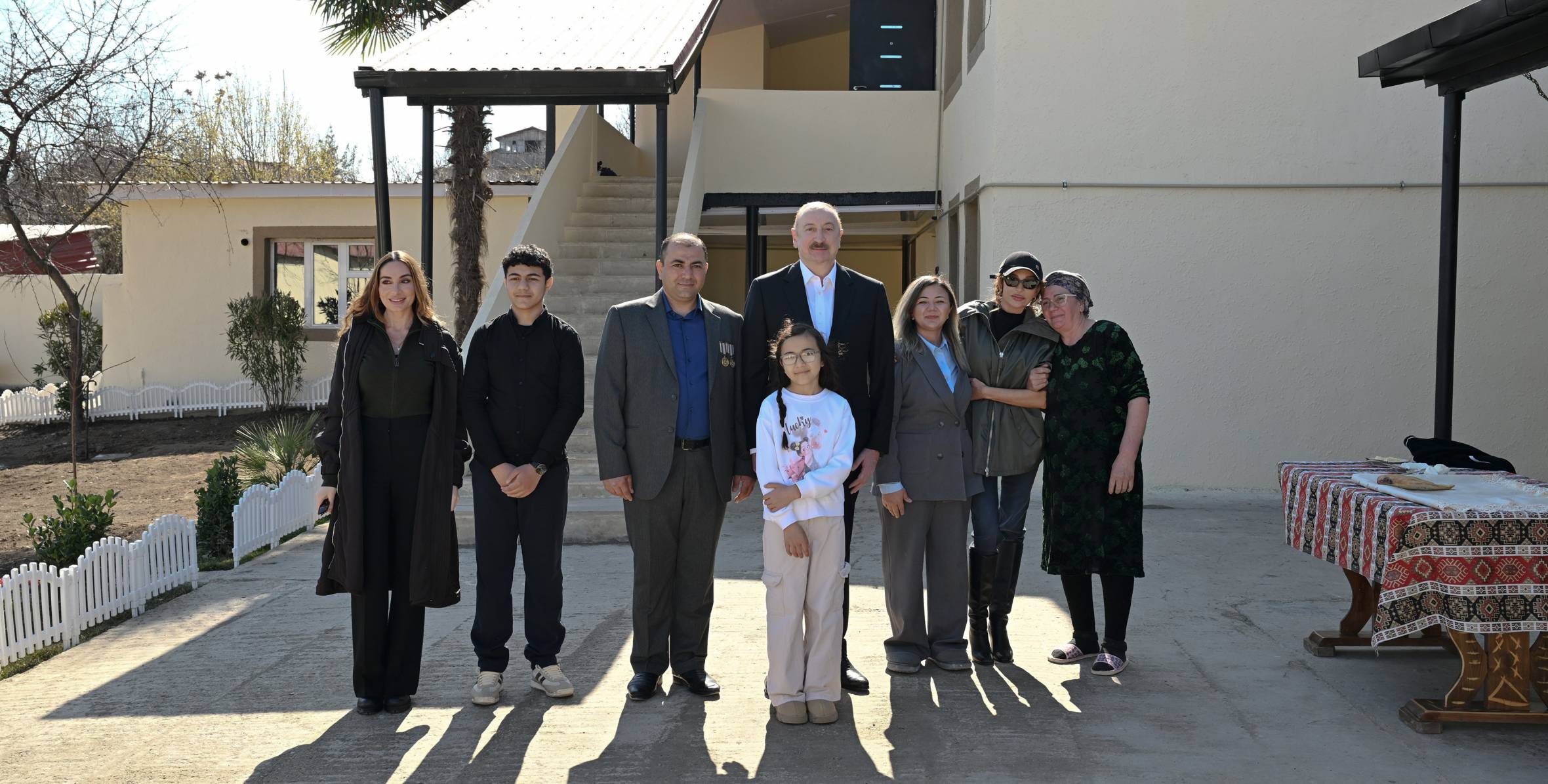 Sonra Prezident İlham Əliyev, birinci xanım Mehriban Əliyeva və qızları Arzu Əliyeva Xocavənd şəhərinə köçmüş İlqar Həsənovun evində oldular və söhbət etdilər.