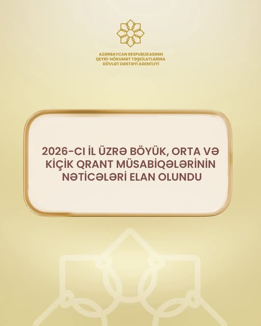 Azərbaycan Respublikasında vətəndaş cəmiyyətinin inkişafına yönəlmiş dövlət siyasətinin mühüm istiqamətlərindən biri də qeyri-hökumət təşkilatlarının sosial və ictimai təşəbbüslərinin dəstəklənməsidir. Bu siyasətin ardıcıl davamı olaraq Azərbaycan Respublikasının Qeyri-Hökumət Təşkilatlarına Dövlət Dəstəyi Agentliyi tərəfindən 2026-cı il üzrə böyük, orta və kiçik qrant müsabiqələrinin nəticələri elan olunmuşdur.