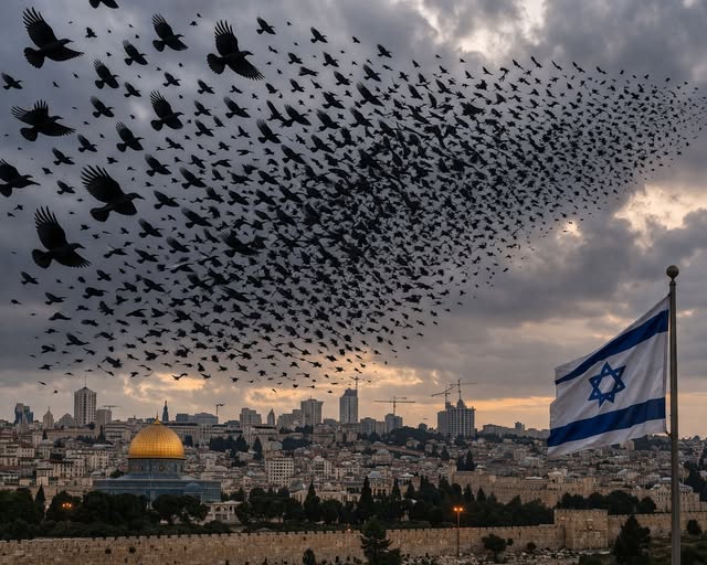 İsrail üzərində səmada sıx, koordinasiyalı naxışlar əmələ gətirən və internetdə geniş diqqəti cəlb edən böyük qarğa sürüsü müşahidə edilib.
